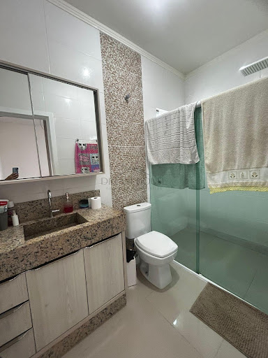 - Banheiros: A suíte conta com um banheiro privativo e os demais dormitórios compartilham um banheiro social.