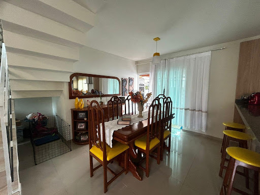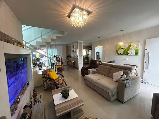 - Dormitórios: 3 quartos na parte superior, sendo 1 suíte master com um espaçoso closet.