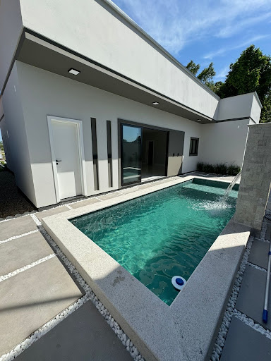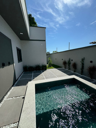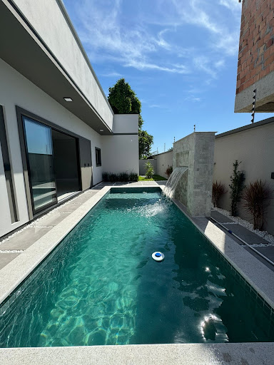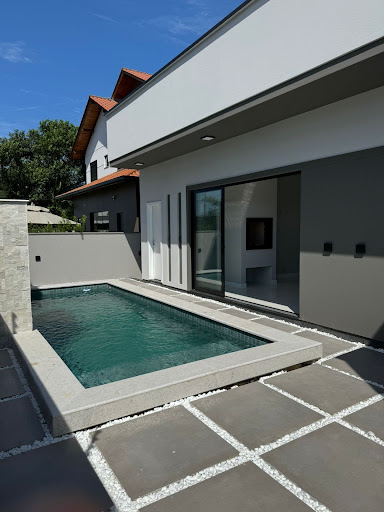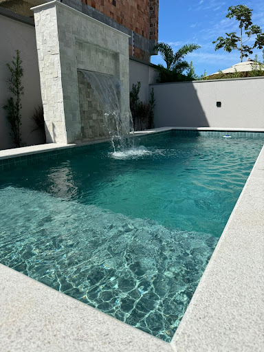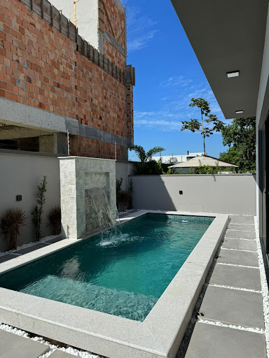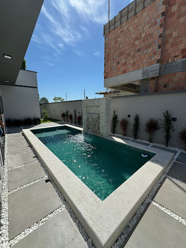 Piscina em concreto + Prainha com revestimento em piso, cascata e com infra para aquecimento????
